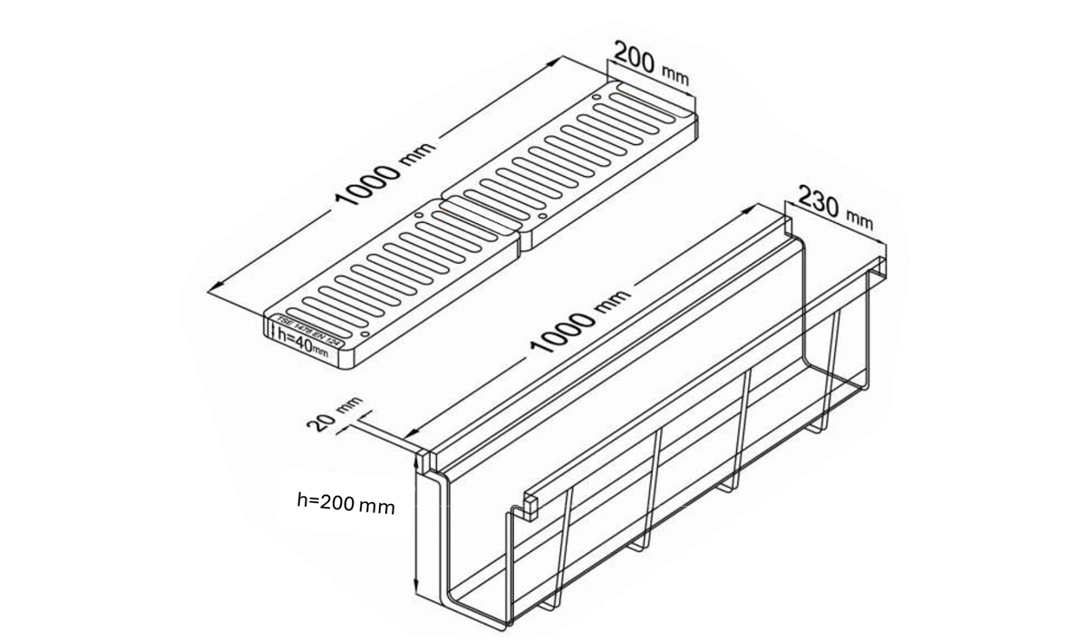Altyapılardaki kompozit kanal ve ızgarası yoğun suyu kendi alanı içinde yönetebilir. Bakımı ve aç kapa işlemlerinde görevli kişilerin altyapılara erişimini kolaylaştırır. Gerekli olan yükü güvenli şekilde tutarak sağlam bir yapıdadır. Kimyasala ve korozyona karşı yüksek direnç gösterir. Eni 200 mm, boyu 1000 mm, yüksekliği 200 mm ve yük sınıfı B125'tir.