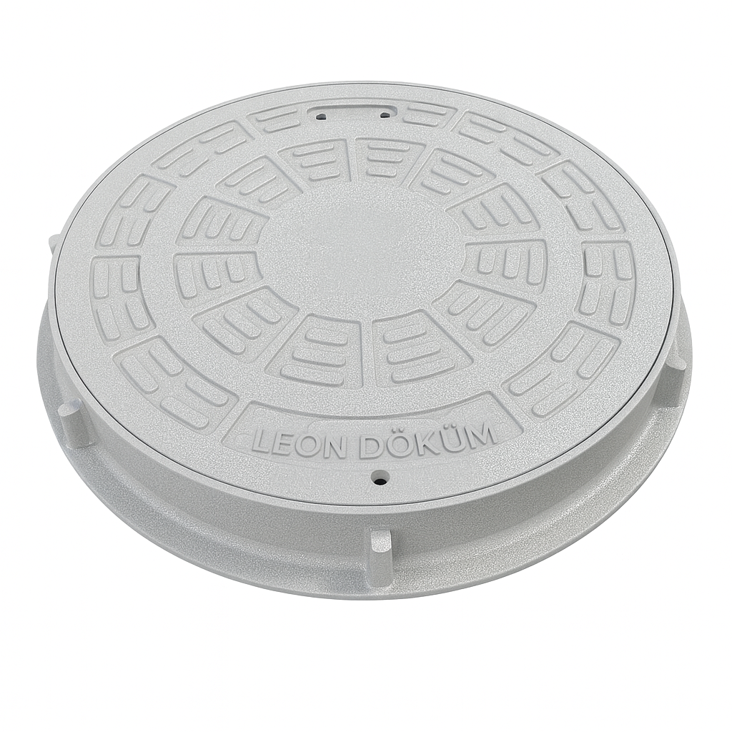 Kompozit kapağın tipi dairesel olarak hazırlanmıştır. Bunun için teker görünümünde bulunur. Ayrıca kapak üzerinde Leon Döküm marka ismi vardır. Marka isminin dışında kalan alanlarda dikdörtgen görünümlü şekiller ve montaj boşlukları bulunur. Bu da kapağın rögar bacasına nasıl takılacağını gösterir.