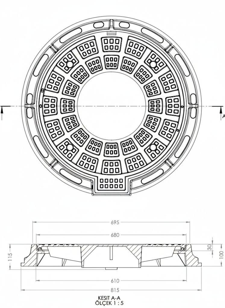 Dairesel yapıda üretilmiş olup dairesel yapılı rögarlar için uygunluk gösterir.